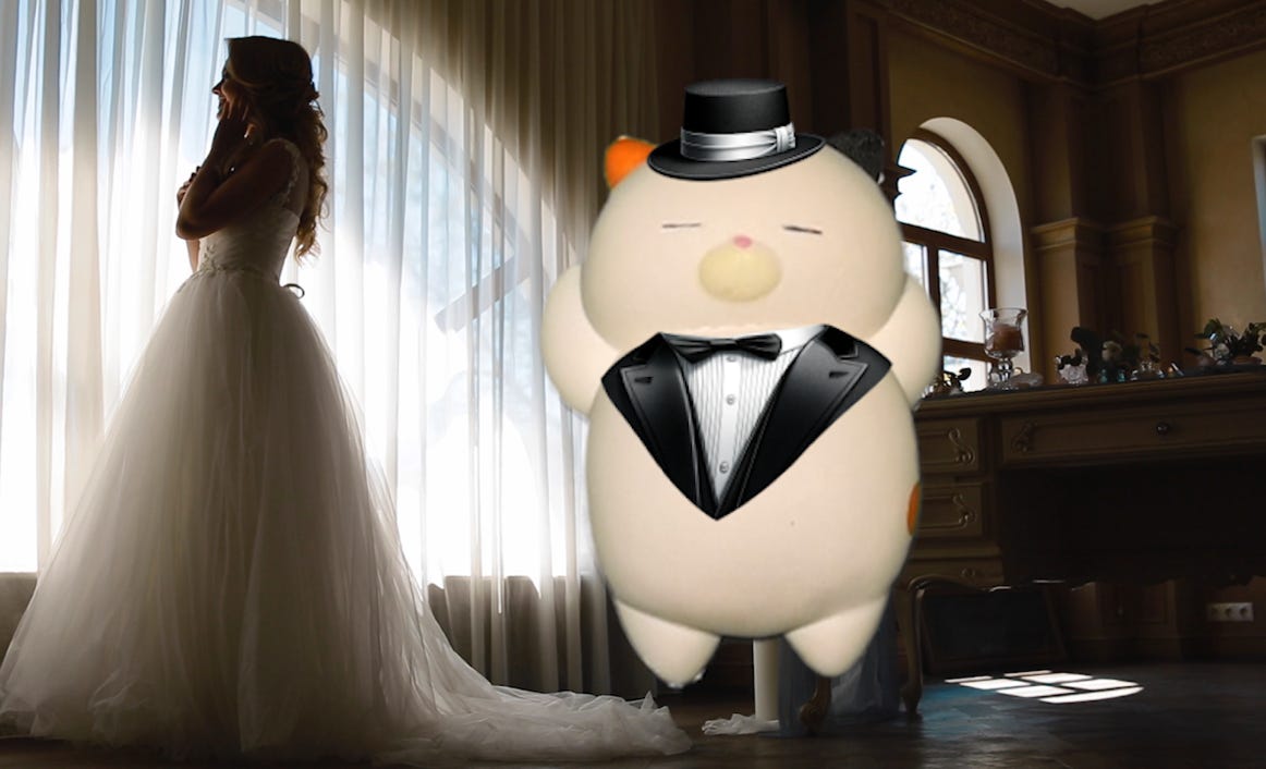 In line with the day's elegance, all the men were required to don tuxedos, and Winky was no exception. Imagine, if you will, a squishy cat toy, known for spreading joy through the positive messages revealed on his unfolding belly, now dressed to the nines in a miniature tuxedo tailored just for him. Winky wasn't just a sight to behold; he embodied the very essence of celebration.