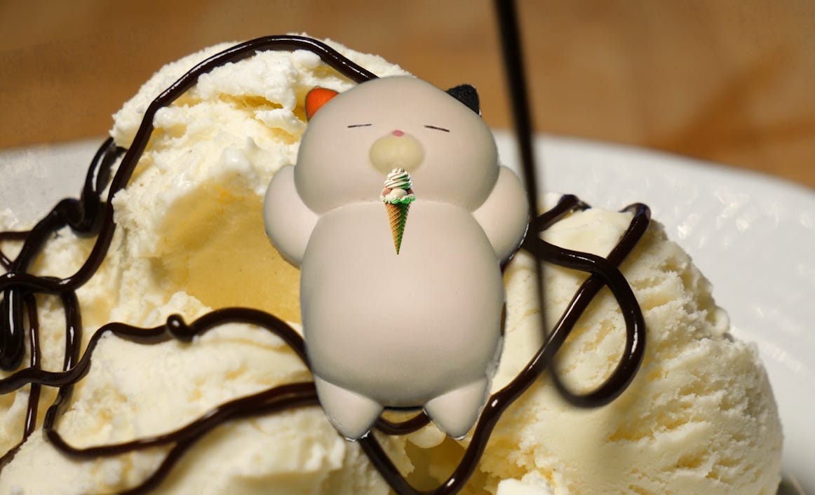 As the soft tinkle of the ice cream truck jingles down the street, Winky finds himself perched on the edge of a sunny window sill, his gaze fixed on the myriad of flavors displayed like a rainbow spectrum of delight. With paws as squishy as marshmallows and eyes gleaming with anticipation, Winky makes his choice. A cone, towering with scoops of creamy goodness, finds its way into his embrace, and as he relishes in the cold, sweet flavors, a transformation begins.